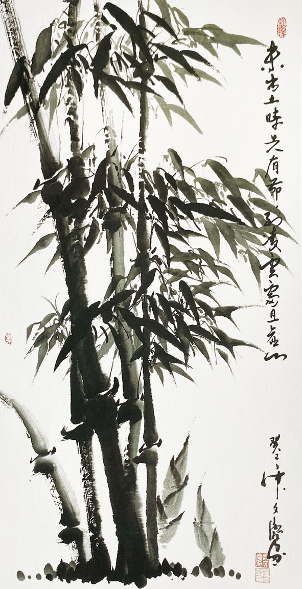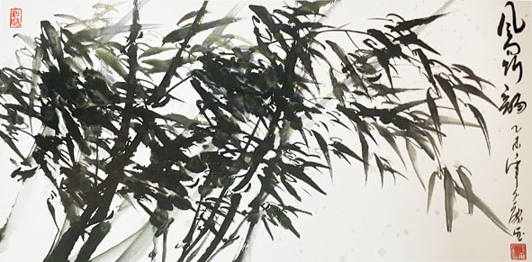 劉文慶對中國寫意畫頗有研究,并進行了長期的藝術哲學上的思考。嚴格意義上講,中國畫是“主觀”的,其基本因素,就是“線條、墨”,其形式就是書法線的筆道與墨呈五色的藝術效果,以色彩點綴、以點線提……方得畫之筆韻。文慶所畫以書法入畫,長期的臨池之功所養成把生命力融入點畫的能力,這一點至關重要。同時又將攝影的“光、影”之美大膽的融入寫意畫中,使他的畫充滿了特有的透視美學意趣。其畫面布局、構圖多來自“攝影家眼晴”的選擇,這或許是文慶繪畫最突出的特色。