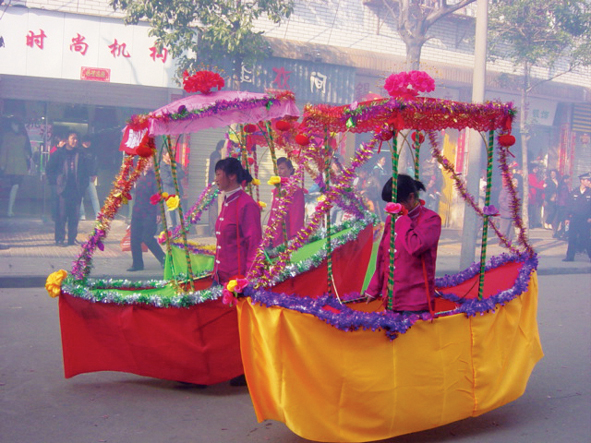 古時人們都是使用農(nóng)歷,來計算時間日子。清版《光澤縣志》“風俗”篇記載了當?shù)貜霓r(nóng)歷年初到年尾,四時年節(jié)都有自己特有的風俗習慣。元旦,正月的元日,就是現(xiàn)在的春節(jié)初一。家家掛鐘馗像于庭中,謂之“辟邪除魅”。門上春帖以紅紙書聯(lián),還有色紙縷金錢或花草人物遍貼于廳柱門庭,謂之歲錢,“以著更華彩之意”。“五鼓爆竹開門”,家家放炮后,家中先焚香,男女穿著新衣,順序先謁拜天地賀新年。然后才開家門,向左鄰右舍道賀新年。說是過去有紛爭的鄰里通過新年互賀,舊有的怨恨也冰釋殆盡。各家備有禮物,走訪親友,請新女婿,喝酒吃肉慶賀。當?shù)孛裰{曰:“賀歲喝到初五六,有酒也無肉。新年正月,“各坊迎神”。城中當時8個坊輪流從初二開始迎接福神降臨,龍燈挨家拜。有錢人家或廟會招戲班看大戲,演贛劇和當?shù)厝菓颍瑧c祝升平。沿街裝飾樓臺,夜點花燈,龍燈、獅燈、茶燈、船燈、花燈、蚌殼燈等燈舞鬧年一直到元宵。立春,常在正月,接春在當?shù)厥谴蠊?jié),一年之際在于春。時辰一到,家家戶戶放炮,擺上供桌供品。用白菜和蔥蒜等綠葉長青的菜用紅線扎起,以示“迎春接福”“新春大吉”之意和春天萬木興榮的好兆頭。初九是玉皇大帝生日,興辦祭祀活動。“上元觀燈”,初十至十五特別是元宵節(jié)張燈結彩,鼓樂花燈,徹夜不息。十五過后,“里塾就學”,家人的子侄后輩開始擇吉日延師課以詩書,農(nóng)工商賈各開始就業(yè)。當?shù)刂V語:“燒訖上元紙,各人安生理。”