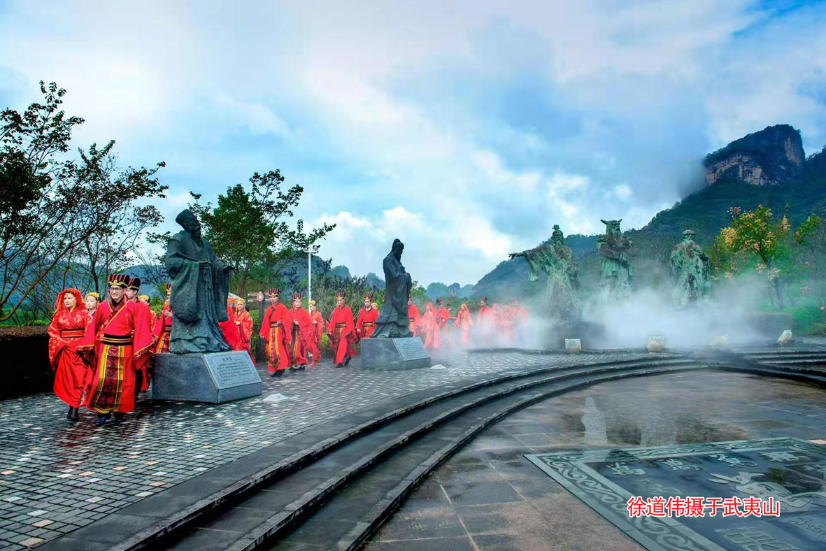 《武夷山之歌》通過(guò)謳歌武夷山的山、水、文化、茶以及“武夷山水”區(qū)域公用品牌等,贊美武夷山的綠水青山、鐘靈毓秀和物華天寶。讀罷《武夷山之歌》, 神奇而富有魅力的大美武夷躍然紙上,無(wú)不令人思緒奔涌、遐想翩翩。武夷山之美,美在其山,武夷山屬典型的丹霞地貌,這里有三十六峰九十九巖的丹山雄姿,其中以大王峰、玉女峰最為著名,大自然孕育出各種令人心馳神往的奇特自然景觀。這種巧奪天工之美只能歸功大自然造化了。所以,作者用“蒼天”,“恩賜了大王峰的尊容”來(lái)表達(dá)武夷山之美。武夷山之美,美在其水,“十里溪流通宛轉(zhuǎn),千尋到岫盡嶙峋” ,作者用“碧水”,“分享著玉女峰的秀容”來(lái)表達(dá)武夷山之美。武夷山之美,美在其文化,中華民族五千年的歷史血脈在這里流淌傳承,有千古之謎的架壑船棺,有兩千多年的閩越古漢城,有三教同山、和諧融合的輝煌歷史。武夷山,這是一片神奇而富有魅力的土地,這是一處自然與人文交相輝映的人間仙境,既是“中國(guó)的武夷山”,也是“世界的武夷山”。武夷山之美,美在其茶,“溪邊奇茗冠天下,武夷仙人從古栽”,武夷巖茶歷史悠久,它以獨(dú)特的巖韻和悠久的茶文化而享譽(yù)中外,是中國(guó)十大名茶之一,在我國(guó)茶葉發(fā)展史上占有重要的地位。