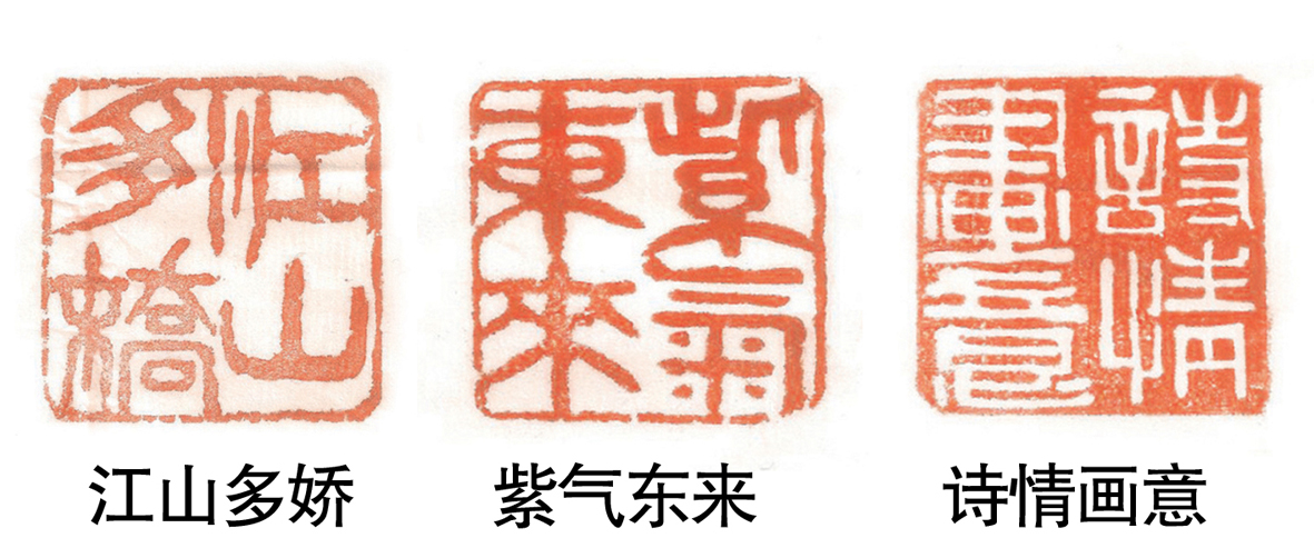 陳則生還喜愛篆刻,摹習臨刻古璽漢印,集眾家之所長。在京工作期間,拜訪名師,技藝日漸升華,形成了自己的篆刻藝術風格。他將各種基本手法靈活地加以運用,融會貫通地變換各種運刀手法。從“江山多嬌”“紫氣東來”“登高望遠”“學無止境”“詩情畫意”等作品來看,刀法流暢,靈心獨運,厚重而不滯,雄渾蒼勁結字雅正,疏密有致,端莊穩重,古樸厚郁,令人驚嘆!