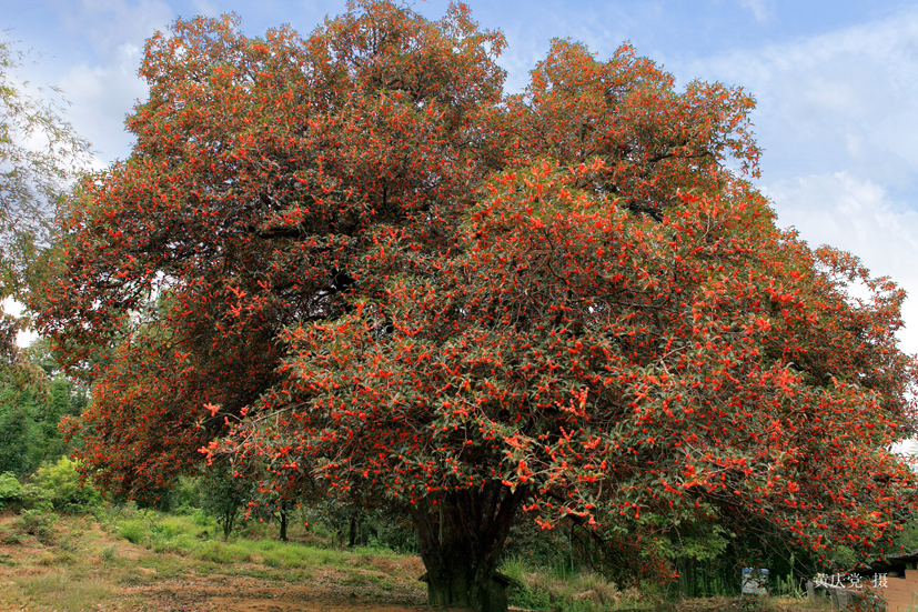 “小臨江,大丹桂”,我的一句口頭禪,臨江鎮(zhèn)實(shí)際上是浦城縣的大鄉(xiāng)鎮(zhèn),是南浦城核心區(qū)、交通要沖,說臨江小主要是講管轄的范圍小,我是個(gè)徒步狂人,近幾年臨江鎮(zhèn)的農(nóng)業(yè)基礎(chǔ)設(shè)施建設(shè)神速,鄉(xiāng)間的田間地頭,修筑了許多標(biāo)準(zhǔn)水泥機(jī)耕道,我在機(jī)耕道上徒步急走,一不小心就走進(jìn)了外鄉(xiāng)地界。說大丹桂是這里丹桂種植面積大,全鎮(zhèn)100多平方千米,房前屋后、田間地頭,凡是能種樹的地方都種上了丹桂,可謂是寸土寸“丹”,這里的丹桂樹特大,號(hào)稱中華第一桂的“九龍桂”就生長(zhǎng)在臨江鎮(zhèn)楊柳尖村,丹桂樹是棵狀植物,主干長(zhǎng)出地面一米以上分支,九龍桂,是一株樅狀桂花樹,她有九根主干,形式九條龍,號(hào)稱“九龍桂”樹高15.6米,冠幅18米,胸圍4.6米,覆蓋范圍230平方米,樹齡超過1100年,年產(chǎn)鮮花240公斤,是目前發(fā)現(xiàn)的全國最大的桂花樹,并以“唐桂”收錄《中國桂花集成》。這里的桂花產(chǎn)業(yè)大,臨江鎮(zhèn)桂花產(chǎn)業(yè)從園林綠化開始起步,臨江鎮(zhèn)的桂花樹株株都高大挺拔,皆為園林綠化首選,“好大一棵樹”,人們首先想到的當(dāng)然是“九龍桂”,她的名氣實(shí)在太大了,臨江鎮(zhèn)村民房前屋后的每一棵桂花樹都稱得上“好大一棵樹”,都是臨江鎮(zhèn)做大桂花產(chǎn)業(yè)的好幫手,丹桂從綠化起步,往食品拓展,目前已經(jīng)研發(fā)出高端桂花酒、桂花糕、桂花蜜,還有桂花茶,閩北的兩棵樹在臨江鎮(zhèn)終于強(qiáng)強(qiáng)聯(lián)手,臨江鎮(zhèn)茶人胡春友先生已經(jīng)研發(fā)出了桂花紅茶、桂花綠茶,在桂花干花的保香、保色、保質(zhì)上也頗有建樹。