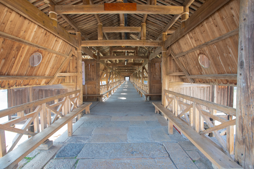 如今已666歲的鎮(zhèn)安橋,雖然歷經(jīng)多次的水和火的洗禮,依然風(fēng)姿卓越。要和小仙女比美,閩北廊橋很多,大多濃墨重彩,只有臨江鎮(zhèn)安橋不涂脂抹粉,仍然叫六宮粉黛無顏色而力壓群芳。福建省省級(jí)文物保護(hù)單位,大明朝洪武年間建設(shè)的純杉木斗拱橋鎮(zhèn)安橋,在清澈見底的溪流映襯下,美輪美奐。金秋十月,駐足鎮(zhèn)安橋,品桂花茶,吃桂花糕,觀賞丹桂樹紅遍的臨江溪兩岸美景,在涼爽的秋風(fēng)里,沐浴著遠(yuǎn)近飄過的陣陣桂清香,小七會(huì)后悔下嫁臨江章大嗎?后悔的應(yīng)該是她的六個(gè)姐姐吧!