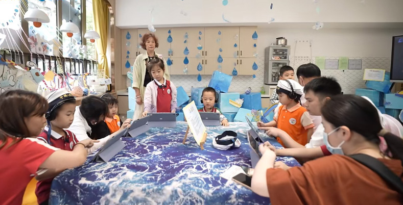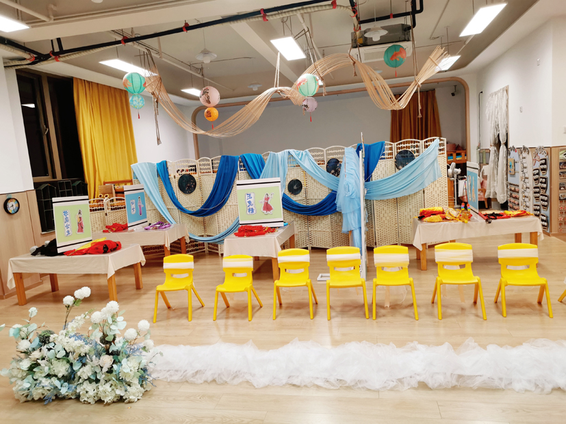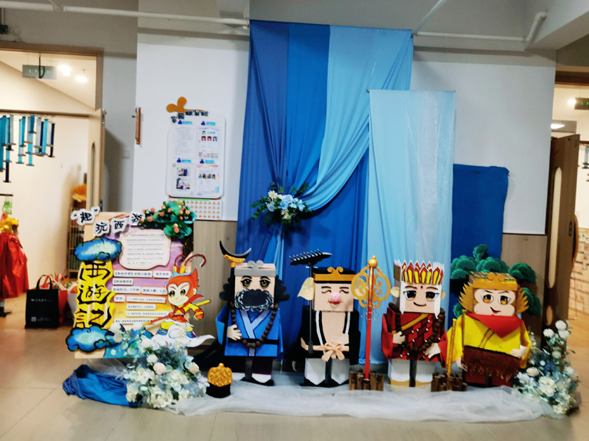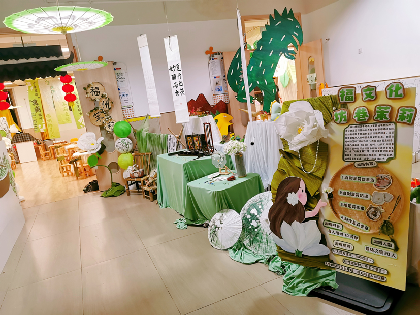 幼兒園為孩子們打造了12個(gè)各具特色的“故事游園館”,引導(dǎo)孩子們在《小蝌蚪找媽媽》《西游記》等經(jīng)典童話故事中感受真、善、美;在閩都故事、福文化故事中了解福州的民俗文化,萌發(fā)愛家鄉(xiāng)的情感;在《雞毛信》等紅色故事中感受英雄的力量……