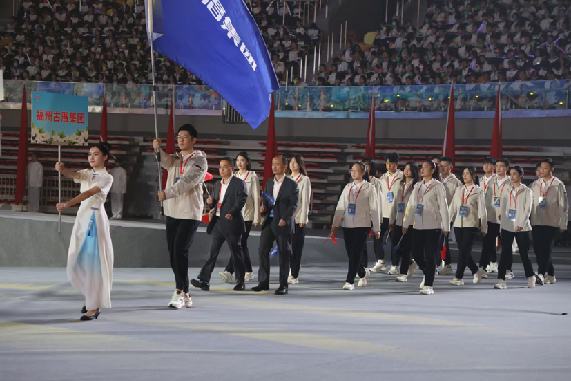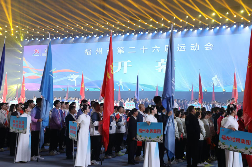 伴隨著激昂的旋律,護旗手護送中華人民共和國國旗、福州市運動會會旗入場。來自12個縣(市)區和25個行業代表團方陣身著整齊服裝、邁著矯健步伐依次入場,以昂揚姿態展示新時代有福之州的朝氣蓬勃、奮發有為、開拓進取的風采。