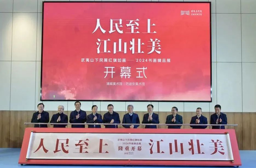 12月8日,由福建省人大書畫院指導,福建省文學藝術界聯合會、南平市人大常委會,中共浦城縣委、浦城縣人大常委會、浦城縣人民政府共同主辦,福建省美術家協會、書法家協會及南平市文學藝術界聯合會、文化和旅游局協辦,南平市人大書畫藝術院、浦城縣文體旅游局、浦城美術館/范迪安美術館共同承辦的“人民至上 江山壯美”武夷山下風展紅旗如畫——′2024書畫精品展在浦城美術館/范迪安美術館正式開展。