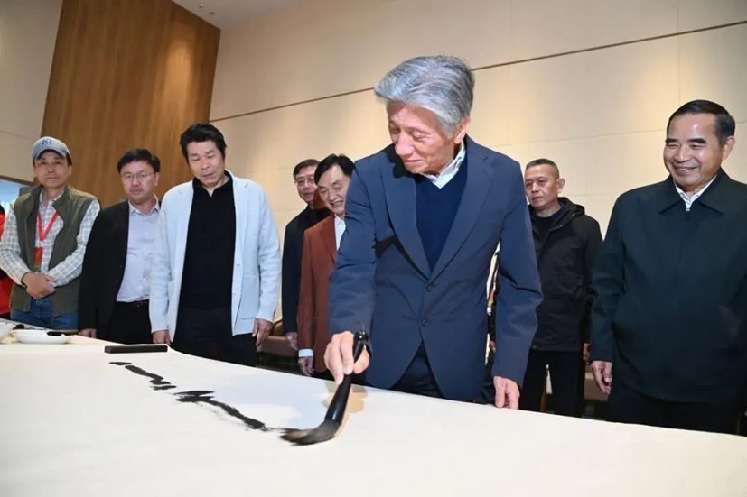 參觀展覽后,范迪安為書畫筆會活動開筆。