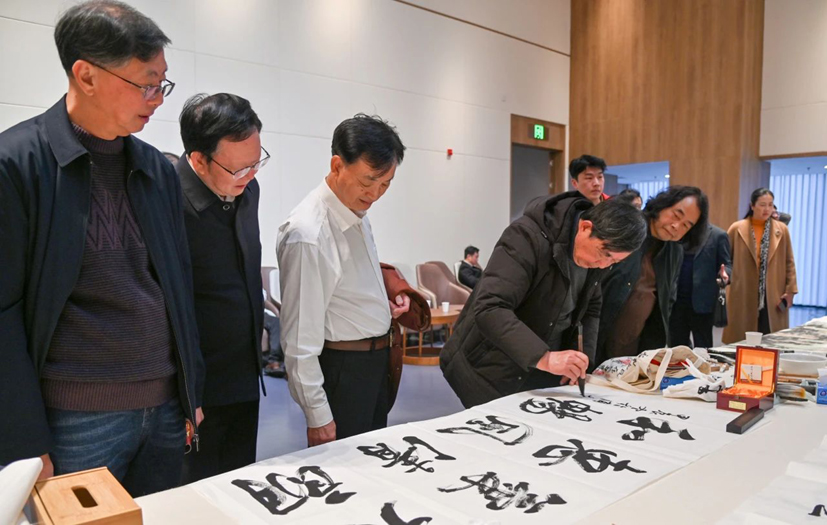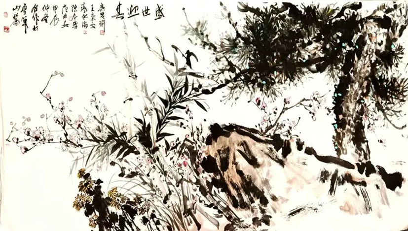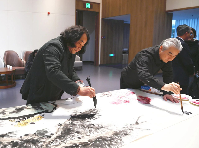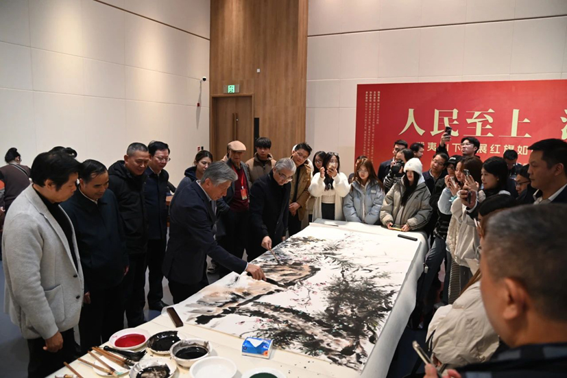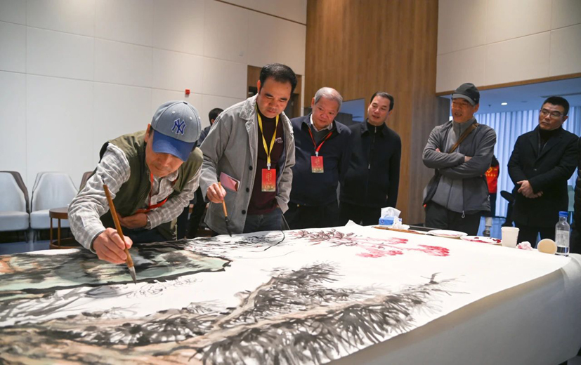 范迪安、葉雙瑜、王來文、張永海、陳春勇等現場共同創作了8尺畫作《盛世迎春》。