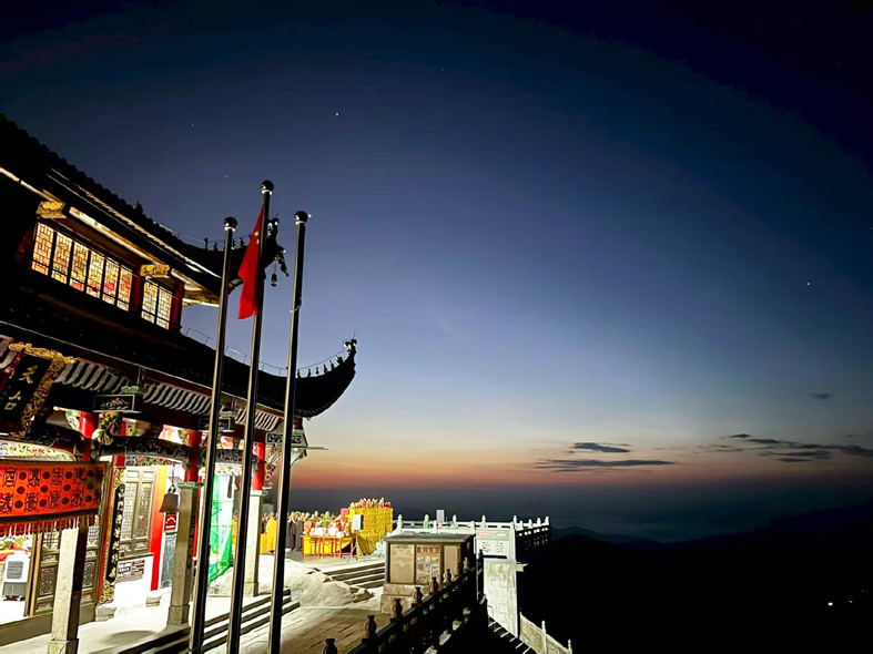 海拔 1306 米峰頂?shù)奶炫_寺,則是高山玄寺的代表。寺院始建于宋代,后經(jīng)多次重建修整,巧妙借助山梁凹陷處構(gòu)造,與周邊峰、石、洞融為一體。站在天臺寺前,遠(yuǎn)可眺望黃山、長江,近可俯瞰整個(gè)九華街,百歲宮亦在腳下。其優(yōu)越的地理位置與精妙的建筑構(gòu)思,令人贊嘆不已。