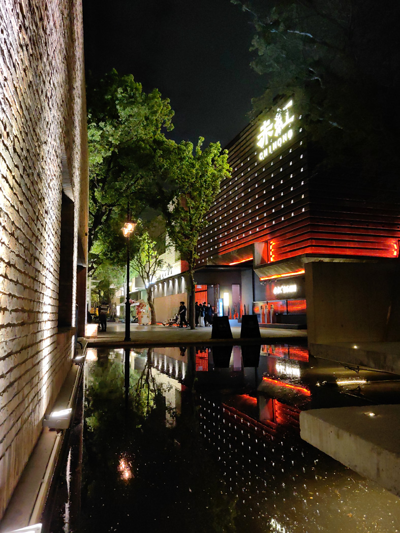不知不覺間天色已晚,國善建議去嘗嘗這里最好的西餐。我們順著他指的方向,走不遠,拐個彎,就來到了西餐廳SOMEWHERE。這家店主打葡萄牙里斯本風味蒜香混合海鮮與澳洲牛排,還巧妙融合多種西餐元素,風格獨特。此時,暮色正慢慢浸染EKA•天物的紅磚廠房,而SOMEWHERE的玻璃穹頂下,正流轉著暖金色的光,充滿了溫馨的煙火氣。晚風裹挾著噴泉的水汽掠過餐桌,遠處銅堡金屬外殼倒映的晚霞,落在餐盤邊緣,碎成一片片粼粼光斑,景致動人。很快,服務生端上了各色菜品:招牌蜂蜜脆皮清遠雞的琥珀色脆皮,在燭光下泛著蜜釉的光澤,刀尖輕輕一碰,便發出“咔呲”脆響,滾燙的肉汁裹挾著迷迭香與百里香的辛香瞬間漫溢而出;肉醬意面飄來番茄與帕瑪森芝士的馥郁香氣;炭烤澳洲和牛的焦香,與迷迭香枝燃燒的青煙在空氣中交織;冰鎮后的霞多麗白葡萄酒,其清爽酸度恰好化解了燴飯的豐腴,杯壁凝成的水珠不時滾落,在亞麻桌布上洇開淡淡的深灰色印記。小華和昌富曾是部隊的老戰友,此次相見是分別二十多年后的重逢,倍感親切。小華感慨:“退休后在上海生活了十幾年,沒有比這家更好的西餐廳”。昌富贊嘆:“廈門也吃不到這樣的美食”。在這個由挑高玻璃房、臨水露臺、銅堡地標與紅磚廠房共同構成的工業風藝術空間里品嘗西餐,浦東風情與工業遺跡相互碰撞,氤氳著獨屬于魔都的浪漫氛圍,令人沉醉。