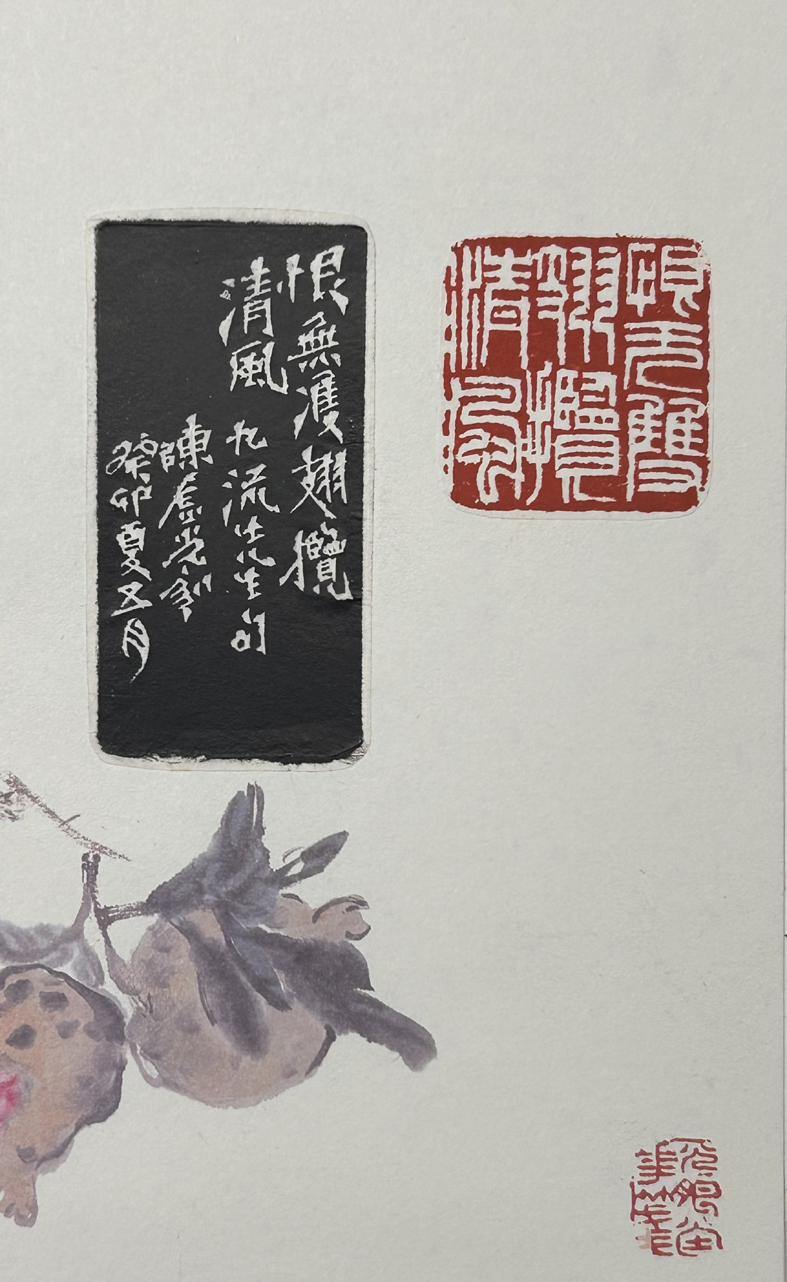 還有:施朱布白,巧思妙構,輕松自在,涉刀成趣。款識四體兼擅,雋爽遒勁,出色當行,游刃有余。