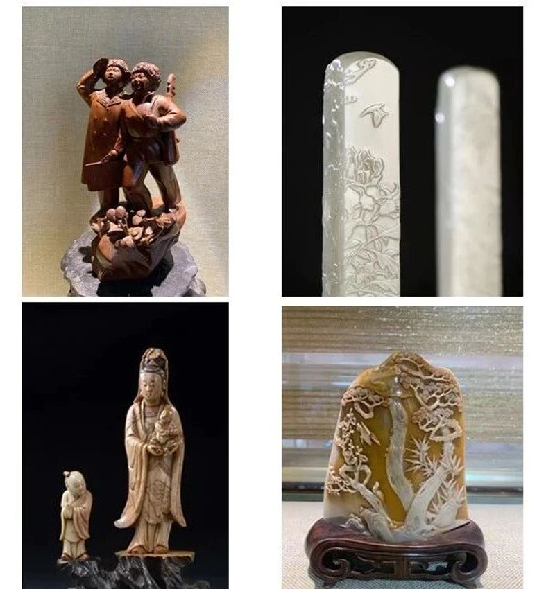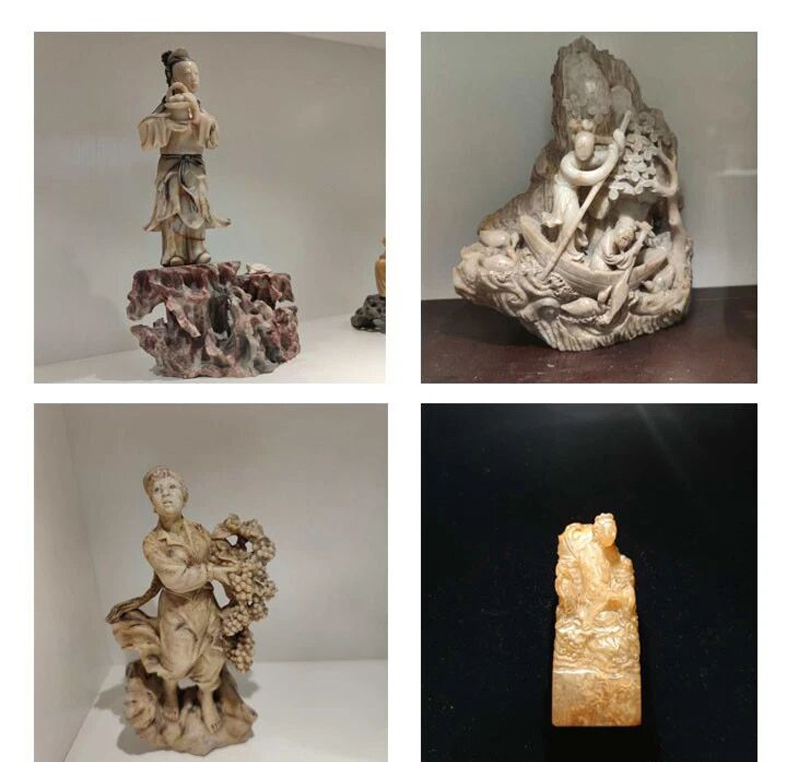 林昊給我看他收藏的林清卿的薄意精品《花卉對章》、周尚均的《梅蘭竹菊》博古紋四對印章、林元珠的《海潮觀音》、陳巨來篆刻的《休說前事》印章。這些精品古樸自然,包漿渾厚,大巧若拙,雕刻極為生動。對精品壽山石的獨特之愛和廣泛涉獵,讓林昊對家鄉(xiāng)的 “天遣瑰寶” 每隔一段時間總有新的認識。眾所周知,壽山石是世間 “尤物”,壽山石的原石,因為它的質地、顏色、光澤和紋路等,極具欣賞和收藏價值,特別是名家雕制而成的壽山石更有非常高的欣賞和收藏價值。“把玩” 是中國所獨有的歷史悠遠的文化現(xiàn)象,而溫潤凝膩的壽山石無疑是最佳的把玩對象。由于林昊自己就是壽山石雕刻好手,因此他對壽山石的判斷基本上都是準確的。他至今依然覺得,有時好東西會等自己。有一次,他在網(wǎng)站上看到美國費城的一家拍賣行有一件田黃精品,但又覺得像蜜蠟,猶豫不決。在與對方多次交流溝通后,對方告訴他是燥石,由此他基本斷定是壽山石,于是二話沒說,便買了一張機票飛到美國紐約。之后連時差都還沒倒過來,便叫朋友開車將他從紐約送到費城。當時有很多華人買家也在現(xiàn)場,林昊掃了一眼,發(fā)現(xiàn)大多藏家都不是玩壽山石的,于是氣定神閑,志在必得。但正式拍賣開始時,有五位委托人舉牌,這下林昊有點心虛。在兩萬八美金的價位上,林昊舉牌時,委托方由于有一定限制,無法再舉牌,林昊有驚無險地抱得 “美人” 歸。這塊碩大的田黃是 1963 年由原主人的祖父傳給他的,品相極好,有晶瑩剔透的 “蘿卜絲”,如今成了林昊的 “寶貝” 之一。