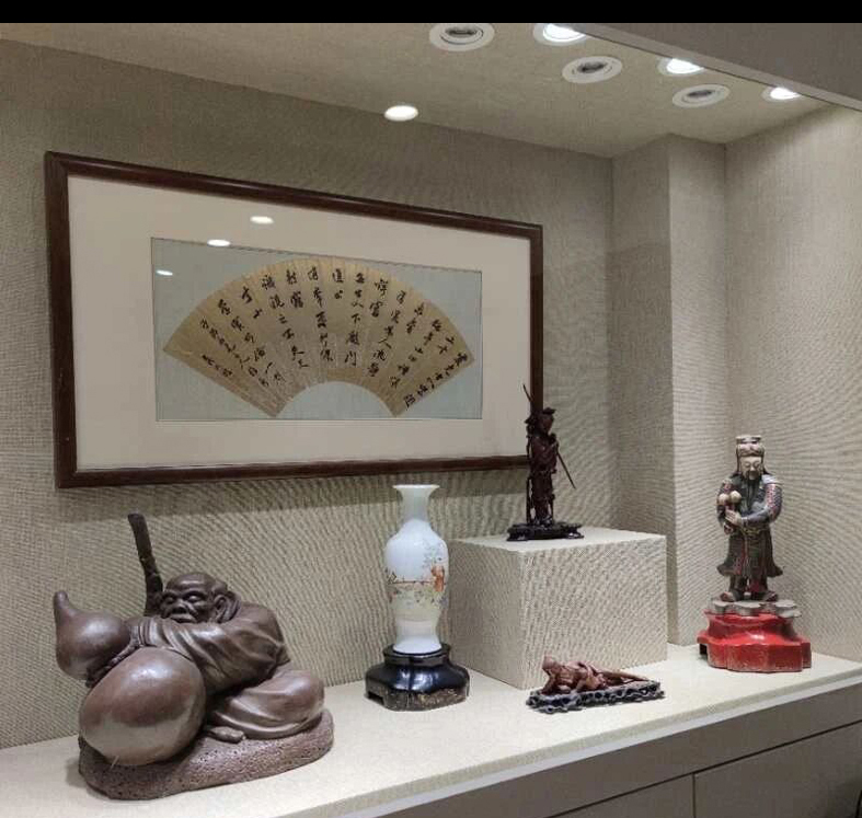 林昊的家四處都是寶物,這里儼然是一個私人博物館。進門顯要處懸掛的是吳昌碩的書法作品,樓梯轉角處懸掛著嶺南派大師黎雄才的 “何必見千里,自然生遠心” 書法作品、郎靜山的攝影原作、清代何維樸的書法作品等。而書房兼茶室的空間則放滿了他四處收羅或競拍來的精品,許多是博物館級別的。這里有木雕、石雕、瓷瓶、銅壺、紫砂器、牌匾、漆畫、字畫等,琳瑯滿目。這里的每一件寶貝以及主人尋寶的過程都有故事,它們在默默告訴我們收藏的意義。其實收藏就像圖書一樣,當你有了迷茫,翻開書頁的時候,所有的東西都活過來了,并且為你點起一盞明燈,照亮你生命的路。