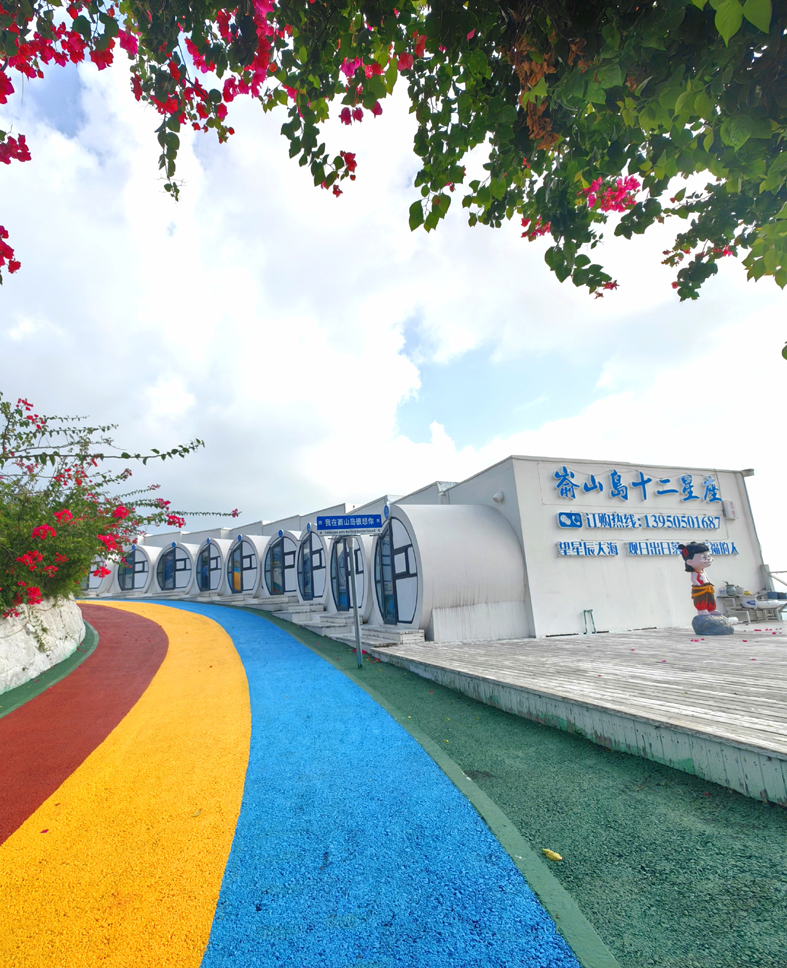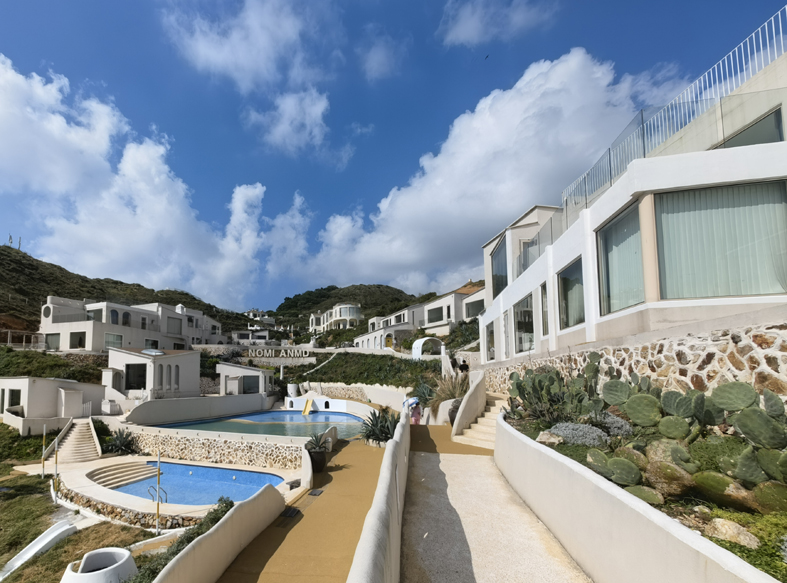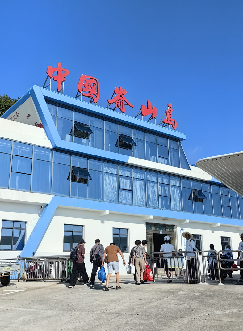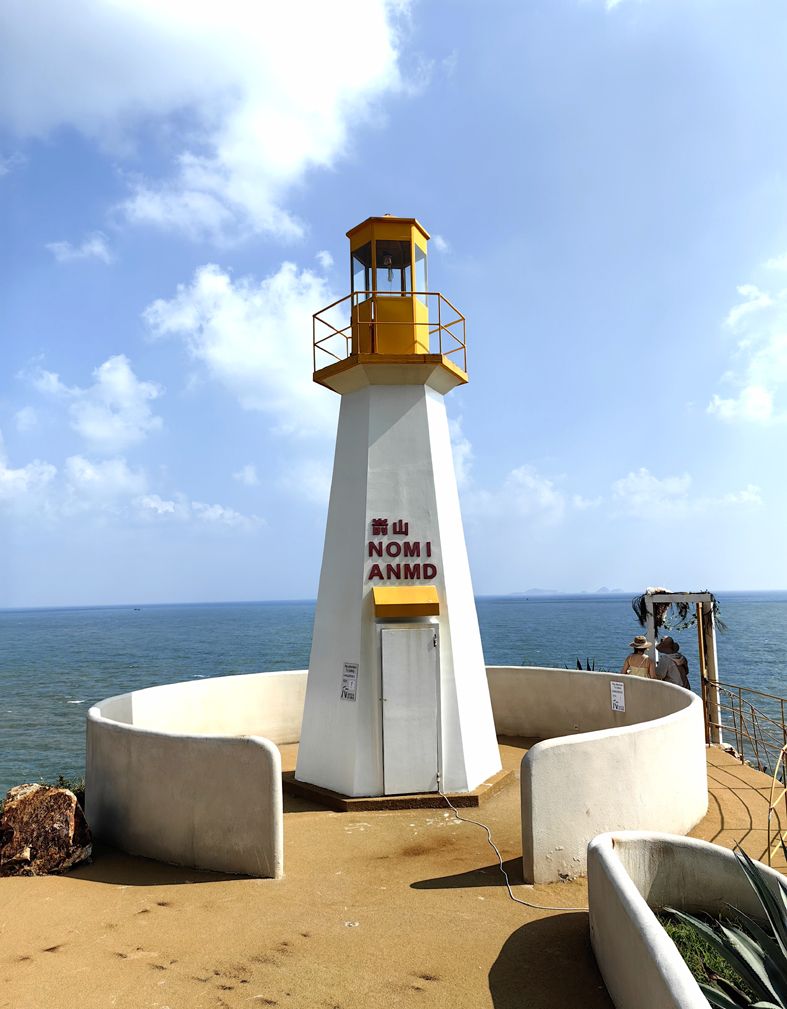 次日,我們慕名前往被《中國國家地理》評為“中國最美十大海島”之一的崳山島。登島恰逢漲潮,海浪裹挾著東海的咸濕,一遍遍拍擊著礁石,卷起漫天飛濺的白浪,那澎湃的聲響與清冽的海風一同撲面而來,滌蕩了旅途的塵埃。鎮黨委書記張里冰高興地說:“你們來的正是時候,環島公路剛建好。”在李老師的精心安排下,我們驅車前往一處名叫NOMI ANMD(崳山島的閩南語)的民宿區。下車后,沿著一條彩色柏油小徑向海邊緩步而行,眼前的景致仿佛穿越到異國他鄉:矗立在海邊的燈塔,輪廓簡潔而挺拔,與加拿大溫哥華斯坦福公園海灣的燈塔相似;路兩側錯落有致的白色建筑群,帶有地中海風格的簡約靈動,恍惚間讓人誤以為置身希臘圣托里尼的藍白小鎮;沿途不時邂逅不同膚色、身著各式服飾的外籍游客,更增添了幾分國際風情。行至海邊一家臨海小館歇腳,房東熱情地為我們泡上一壺福鼎白茶。我倚在窗邊,一邊啜飲著茶湯里的蘭香回甘,一邊靜賞窗外的碧海藍天,耳畔是海浪的輕吟,十分愜意。