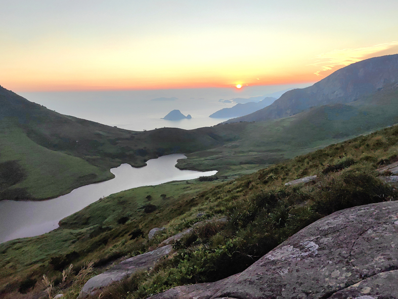 稍作休整,我們行至半山腰,一片澄澈的淡水湖映入眼簾。這是全省海拔最高的天然湖泊,湖水倒映著天光云影,靜謐如畫。抵達山頂,萬畝草甸如一塊無垠的綠色絨毯,在山間鋪展蔓延,羊群點綴其間,悠閑地低頭覓食,勾勒出一幅“天蒼蒼,野茫茫”的田園畫卷。我憑欄遠眺,夕陽正緩緩沉入東海,將漫天云霞染成絢爛的橙紅,粼粼波光倒映在海面上,宛如碎金撒落,美得令人屏息。