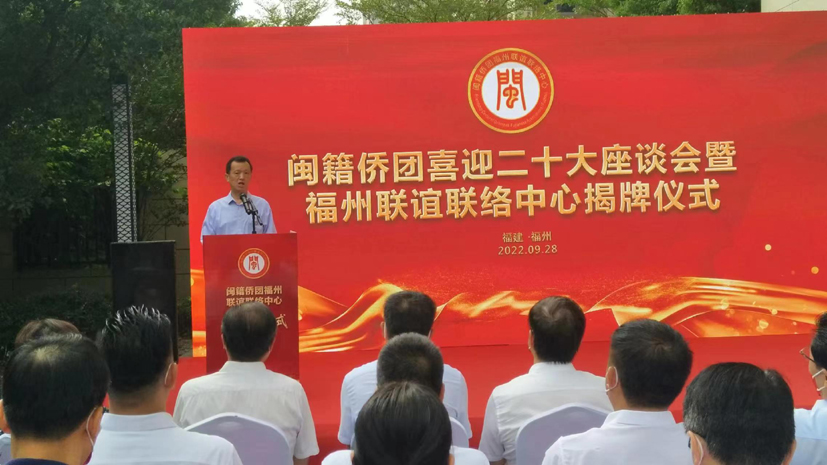 9月28日,閩籍僑團“攜手向未來、喜迎二十大”座談會暨福州聯誼聯絡中心揭牌儀式在榕舉辦。福建省僑聯主席陳式海,省政協港澳僑臺工委副主任馮志農,省政協民宗委副主任林衛寵,致公黨福建省委會專職副主委吳棉國,省委統戰部二級巡視員張志英,省人大僑臺工委二級巡視員陳木燦,福建省人民政府顧問武評;福州市僑聯二級巡視員藍桂蘭,市人大僑臺工委主任張修強,市政協僑工委主任劉丹;晉安區政協主席張忠健,區委常委、統戰部部長丁振新,以及有關單位負責人出席。