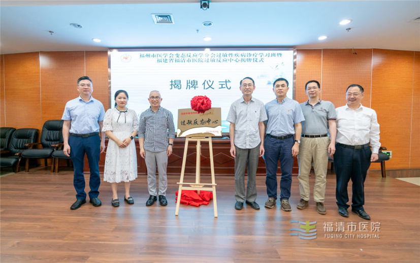 過(guò)敏性疾病廣泛涉及耳鼻喉、呼吸、皮膚、兒科、消化等多學(xué)科,為了給廣大患者提供全方位、深層次、個(gè)體化的過(guò)敏性疾病診療服務(wù),2022年6月24日,福州市醫(yī)學(xué)會(huì)變態(tài)反應(yīng)學(xué)分會(huì)聯(lián)合福清市醫(yī)院主辦召開(kāi)福州市醫(yī)學(xué)會(huì)變態(tài)反應(yīng)學(xué)分會(huì)過(guò)敏性疾病診療學(xué)習(xí)班,并于當(dāng)日舉行福清市醫(yī)院過(guò)敏反應(yīng)中心揭牌儀式。“福清市醫(yī)院過(guò)敏反應(yīng)中心”的建立,可以對(duì)過(guò)敏性疾病患者進(jìn)行集中規(guī)范地診治,打造精準(zhǔn)的過(guò)敏原檢測(cè)、脫敏治療、藥物治療、特異性免疫靶向治療、健康教育以及必要的手術(shù)治療等“一站式”診療業(yè)務(wù)。