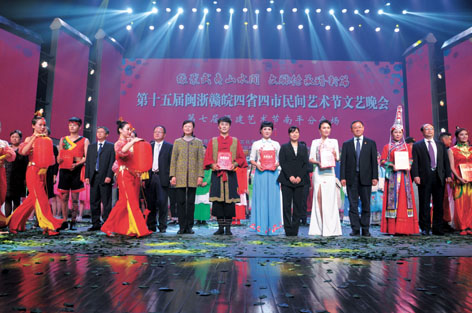 第十五屆閩浙贛皖四省四市民間藝術節暨四省四市慶祝改革開放40周年民間文藝大調演活動,于11月13日晚在南平大劇院開幕。本屆藝術節主題為“緣聚武夷山水間 文脈傳承譜新篇”,主要活動包括:文藝晚會、四省四市非遺文創市集、南平市優秀美術作品展、茗冠古今“茶香萬里——閩北茶文化展(建窯建盞精品展)”。