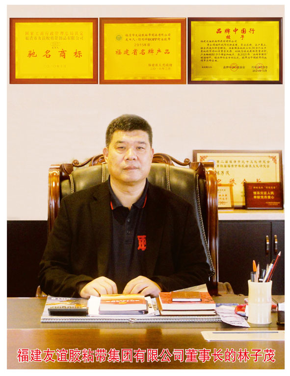 “追求卓越、創造完美、樹立品牌、服務客戶”是友誼集團的質量管理方針。為了進一步提高產品科技含量,林子茂經常帶研發人員到廣東、上海、德國、加拿大等知名企業學習考察,學習先進管理經驗,培養了一支精誠團結、奮進敬業的專業化管理團隊和高素質的員工隊伍,形成了創品牌爭市場、保品牌促發展的良性循環。在他的帶領下,友誼集團致力于內部管理體系改革,2002年以來歷次通過了ISO9001質量管理體系認證和ISO18001環境管理體系認證,全過程對生產設備及生產流程進行全方位管控和產品在線質量檢測,產品出廠合格率達到100%。集團企業歷年來獲得“中國馳名商標”、“福建名牌產品”、“高新技術企業”、“福建省科技型企業”、“福建省包裝龍頭企業”、“中國膠粘帶行業典范企業”等多項榮譽稱號。今年6月,入選2020年福建省工業和信息化省級龍頭企業名單。