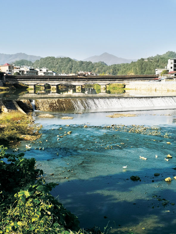 一座橋,就是一段歷史,五福廊橋承載和見證了許多歷史的歲月。冬日的陽光灑滿了渭田古鎮(zhèn),五福廊橋倒映在渭水河上,熙熙攘攘的渭田中學學生從廊橋中穿過。如今五福廊橋繼續(xù)默默地注視著、見證著新時代生機勃勃的發(fā)展與變化。我們期冀五福橋容顏不老,造福后代,為振興鄉(xiāng)村作出新的貢獻!